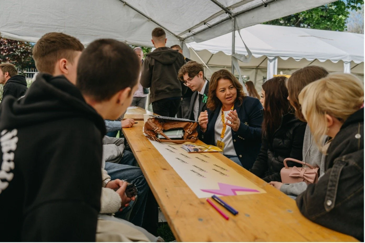 Mentoring tímov v rámci inovatívneho programu pre stredoškolákov v Košickom kraji, zameraného na rozvoj podnikateľských a kreatívnych schopností.